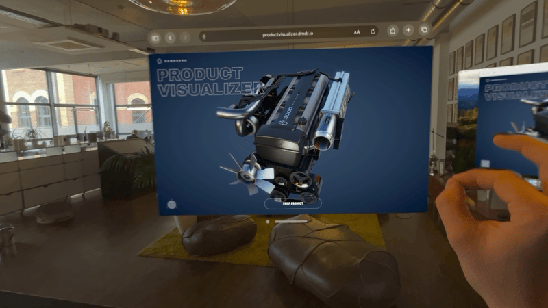 Besonders gespannt waren wir darauf, die Quick Look-Funktion für 3D-Modelle mit ARkit im Vision Pro auszuprobieren. Es war ein nahtloser und intuitiver Prozess, Modelle aus dem Browser herauszuholen und sie im Raum zu platzieren. Die hochwertigen LIDAR-Kameras des Vision Pro liefern dabei eine präzise Darstellung der Objekte, sodass 3D-Modelle in Bezug auf Qualität und Größe überzeugend wirken. Schon bei unseren ersten Tests mit einfachen 3D-Modellen war das Erlebnis beeindruckend, wie etwa bei unserem WWF-Wildlife-AR-Erlebnis oder dem Web-Produktvisualisierer.