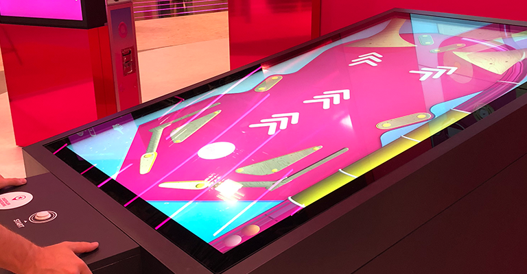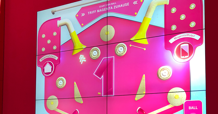 Eine weitere Installation, der digitale Flipper, brachte den Spielern die Themenbereiche rund um den neuen Mobilfunkvertrag MagentaEINS näher. Hierbei konnten die Spieler auf zwei unterschiedlichen Bildschirmen flippern. Ziel war es, den Ball vom unteren eher konventionellen Flippertisch in den oberen Bereich zu katapultieren. Auf einer 3x2 Meter LED Wand konnte der Spieler MagentaEINS Vorteile freispielen und dabei möglichst viele Punkte sammeln.