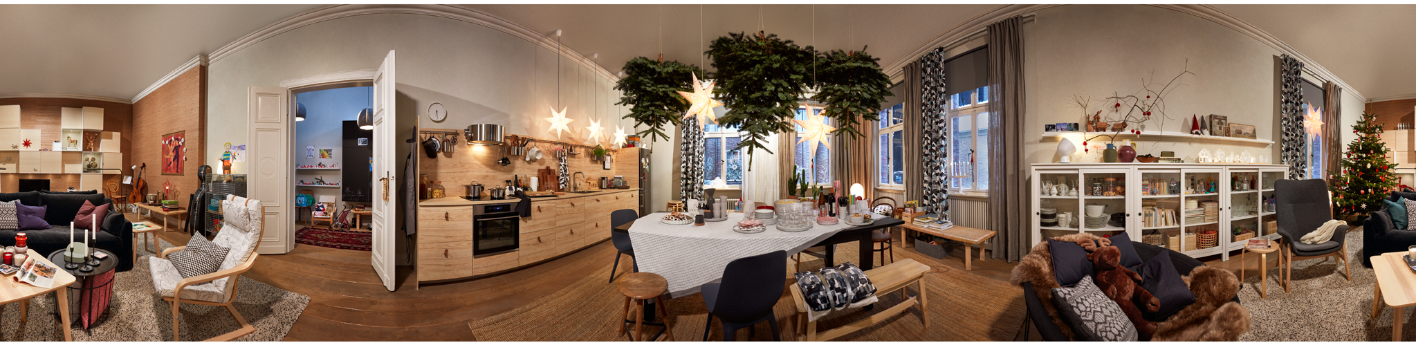 Der Einstieg in das Webspecial gelingt über einen 360° View, der es dem Nutzer ermöglicht, das eingerichtete Zimmer sowie einzelne Möbel über Hotspots intensiv zu erkunden und anhand kleiner Extras wie z.B. lustigen Tanzvideos das perfekte Weihnachtsfest zu planen.