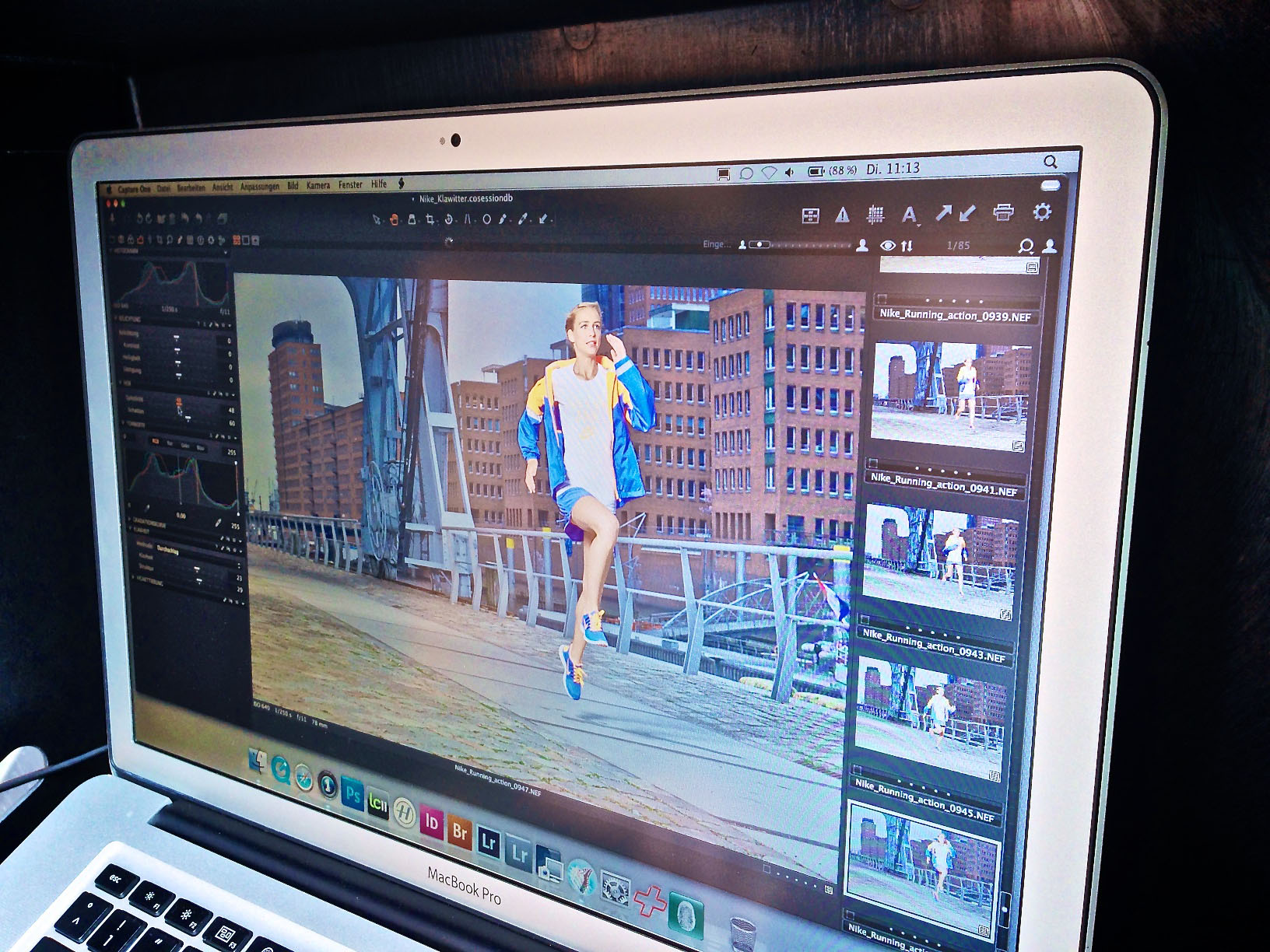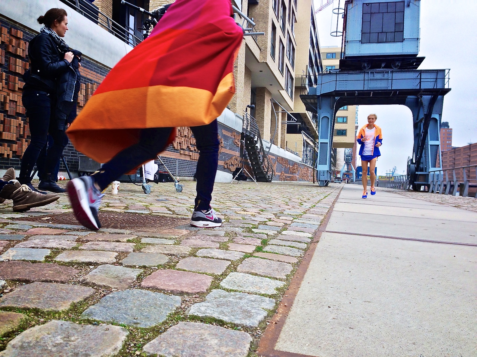 Am ersten Produktionstag dienten uns die Hammer Hallen (die heißen wirklich so) als Indoor Loft Location für die Studio Trainings-Atmosphäre. Am zweiten Produktionstag waren wir in der Hamburger Speicherstadt. Aber ein kleiner Hinweis: Bei den Outdoor Aufnahmen im April kann es schwierig mit Wind und Wetter werden, besonders wenn man versucht, leichte Sommerkleidung auf dem Boden liegend zu fotografieren. Hier ein paar Impressionen von den beiden Tagen.