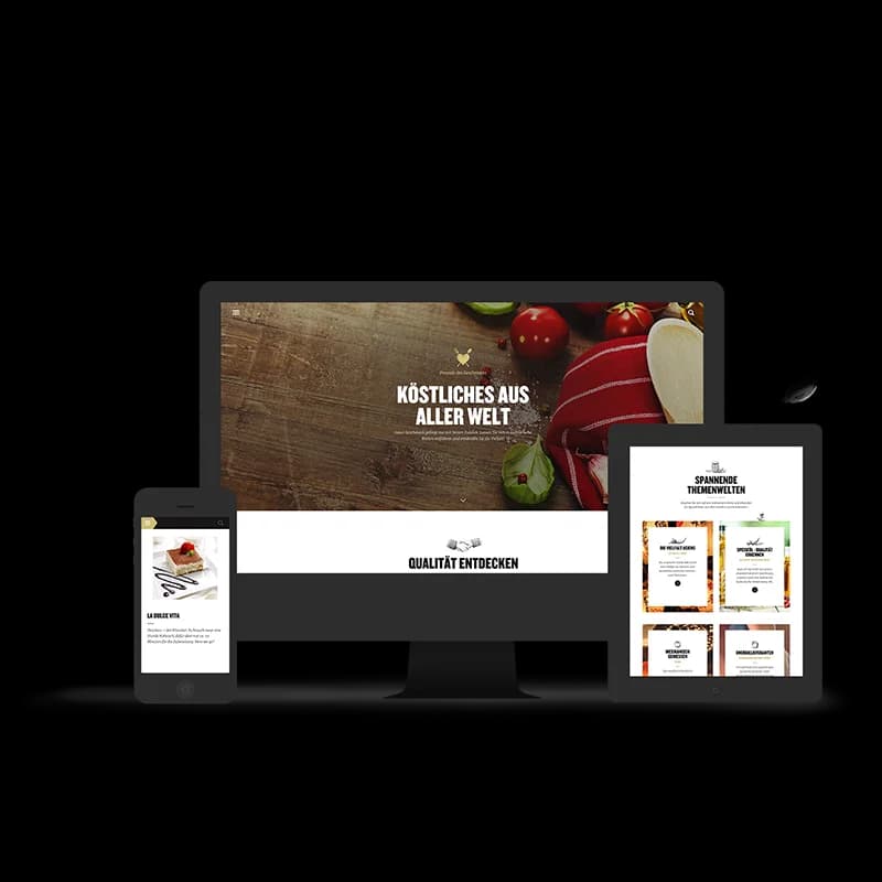 Im Zentrum steht ein redaktionelles Magazin mit Rezepten, Markenporträts und Produktverknüpfungen, das Besucher emotional abholt und zum Verweilen einlädt. Flache Navigation und thematische Teaser ermöglichen direkte Einstiege für Suchende und inspirierende Pfade für wiederkehrende Leser.