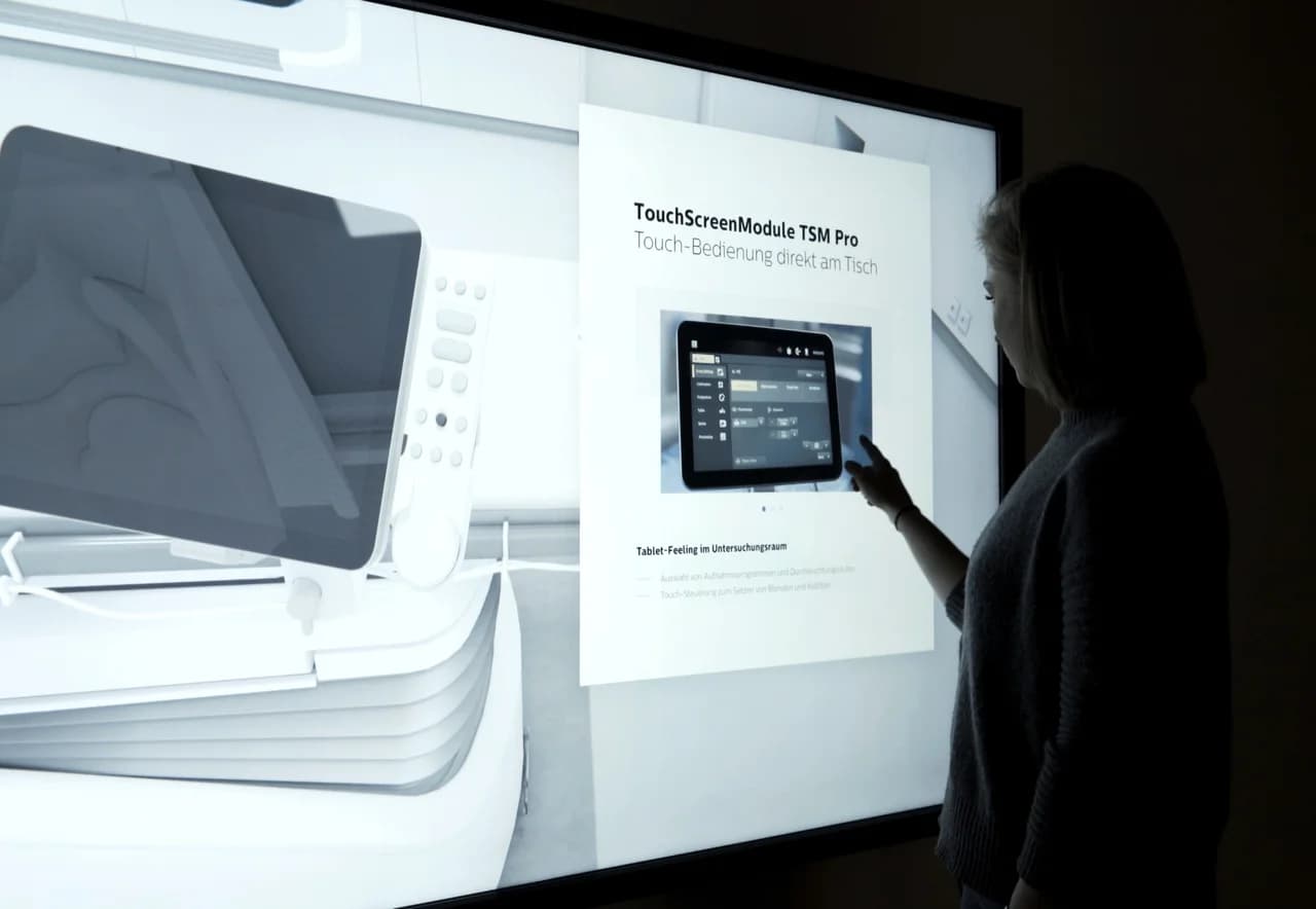 Wir lieferten eine großformatige 3D‑Media‑Touch‑Wall, die das Azurion in Echtzeit aus allen Blickwinkeln zeigt, Varianten vergleichbar macht und fachliche Informationen über Hotspots, Infografiken und Videos zugänglich macht.
