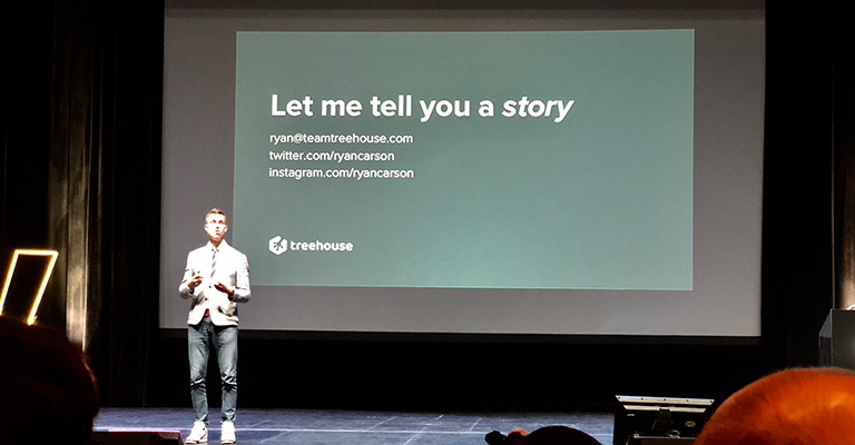 Ryan Carson, Treehouse, zeigte keine Slides, er erzählte nur eine Story: Er fand heraus, dass Menschen vor ihrer Anstellung bei Treehouse gar nicht bewusst war, dass sie in dieser Branche überhaupt eine Chance haben - weil sie einerseits nicht an sich glauben und andererseits einfach nicht wissen, dass diese Möglichkeiten für sie bestehen. Anstatt Headhuntern 20.000 Dollar zu zahlen, investiert er in Menschen und deren Potenzial. Die Investition zahlt sich aus, wenn die Auszubildenden zu Profis und Mentoren werden - zu einer neuen Gruppe von Menschen, die einfach nicht wussten, was sie eigentlich können. Seiner Meinung nach soll man Menschen nicht nach dem Grad ihrer Ausbildung, Erfahrung oder dergleichen einstellen. Erkenne das Potenzial jedes einzelnen und stelle dann den Menschen ein - das ist sein Grundsatz.