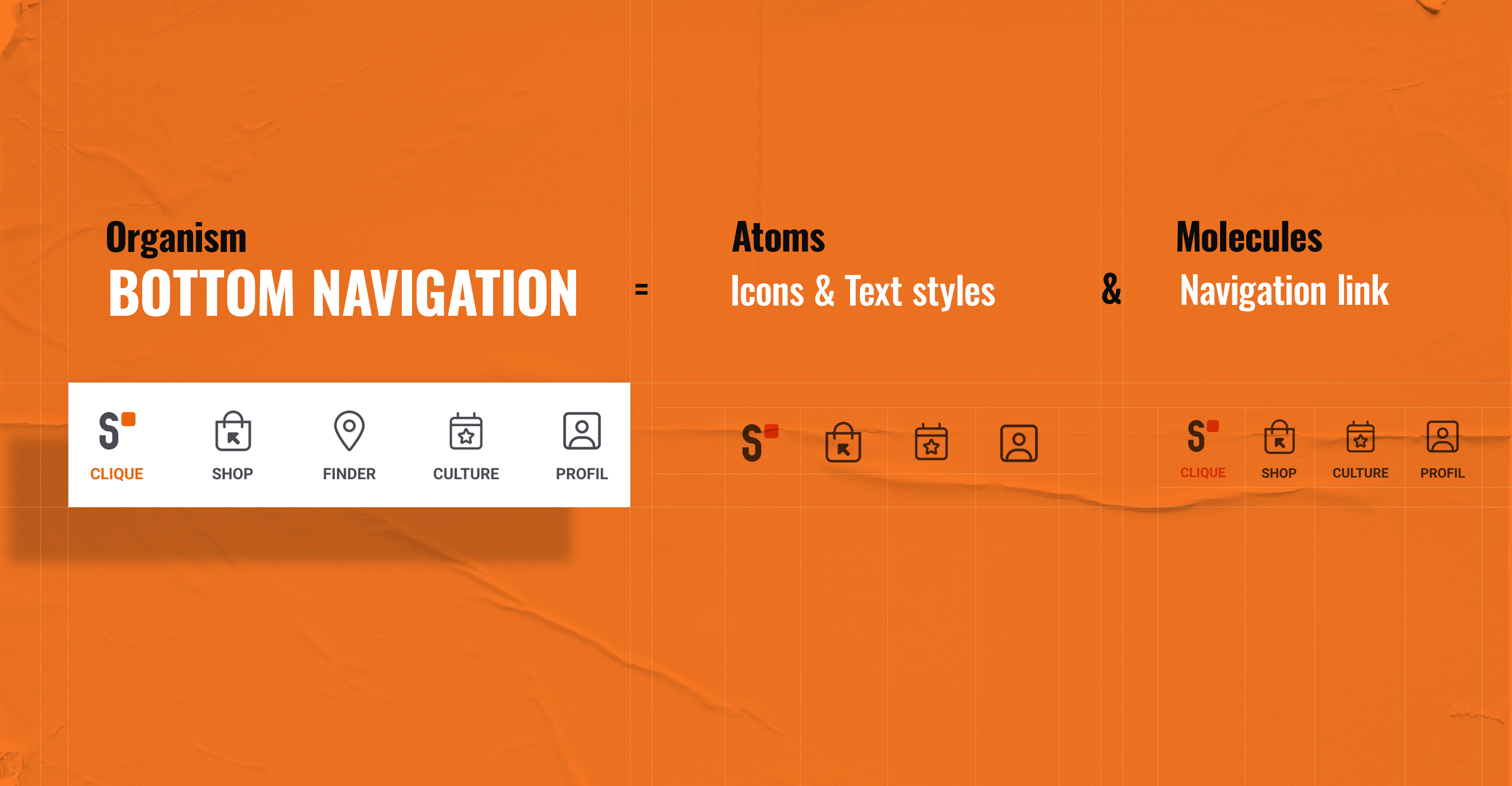 As simple as the name, “Atomic Design” is about visualizing your project from atoms, being the smallest elements on your app such asypography, icons and colors, expanding by the combination of atoms into molecules. These are buttons, inputs, links, input fields, notifications, etc…and again making their way into organisms such as modules, navigation or forms. Until we got everything in a design template that is built from Atoms-Molecules-Organisms.