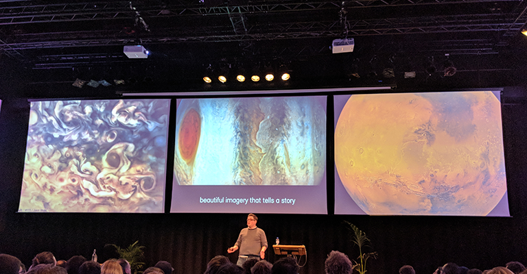 David Sheldon Hicks von Territory Studio, der kürzlich für Blockbuster wie "Blade Runner 2049", "Ghost in the Shell" und "Der Marsianer" gearbeitet hat, präsentierte den designorientierten Ansatz des Studios und zeigte, wie die Blue Sky-Technologie die Filmwelt revolutioniert.