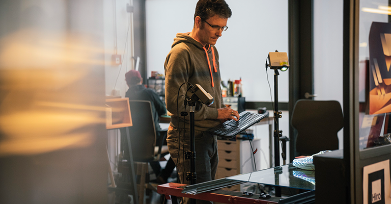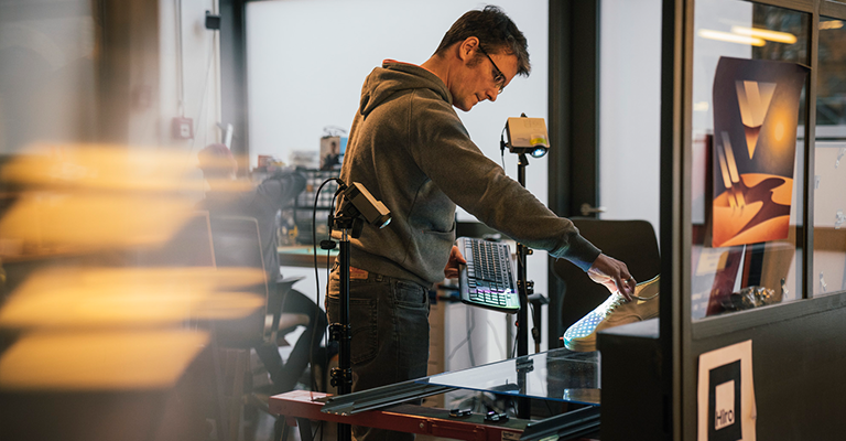 Mapping auf statischen Objekten kennen wir. Getrieben von Innovationen gehen wir mit dieser Installation einen enormen Schritt weiter. In unserem Lab entwickeln wir aktuell das erste Realtime Projection Mapping auf beweglichen Objekten.