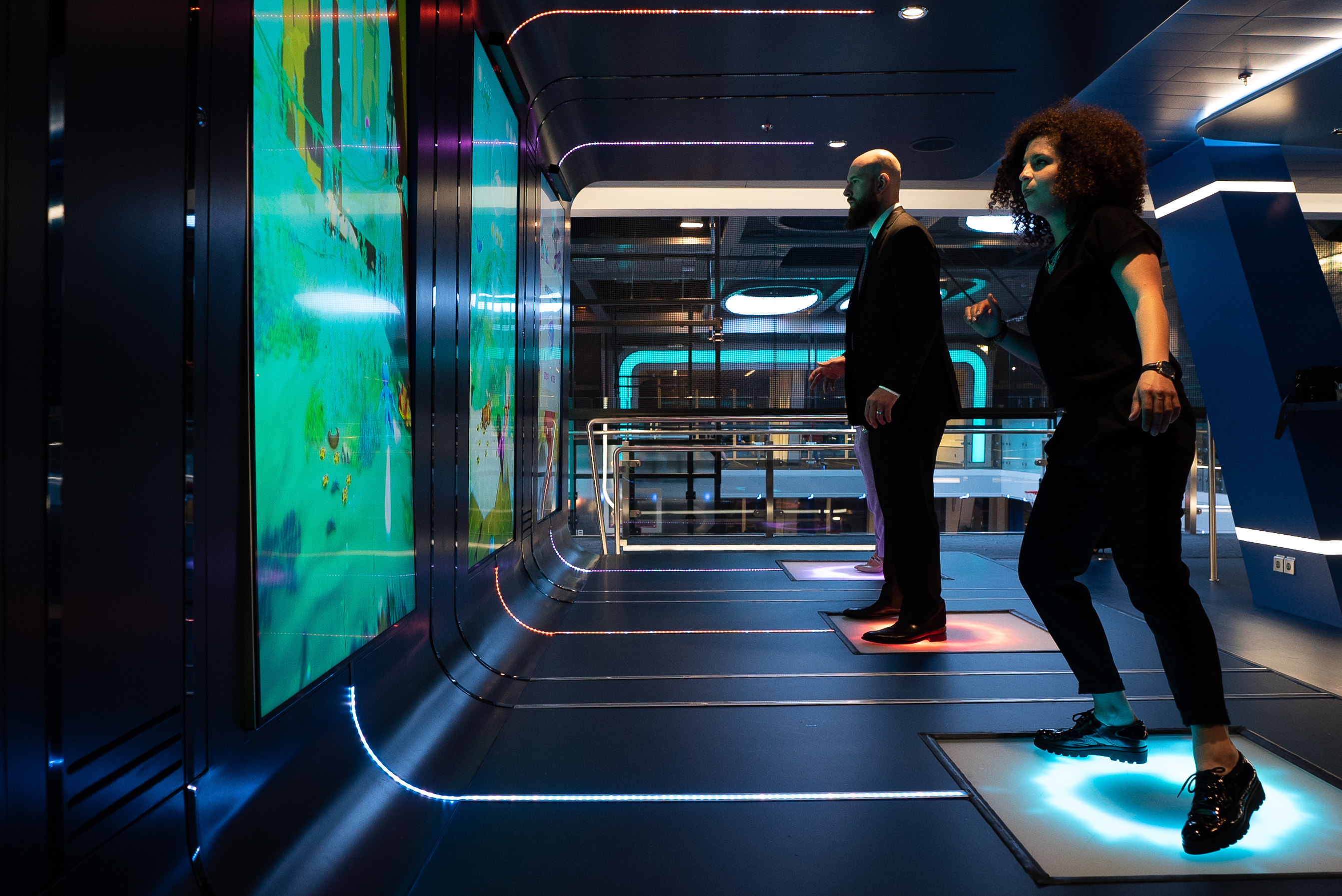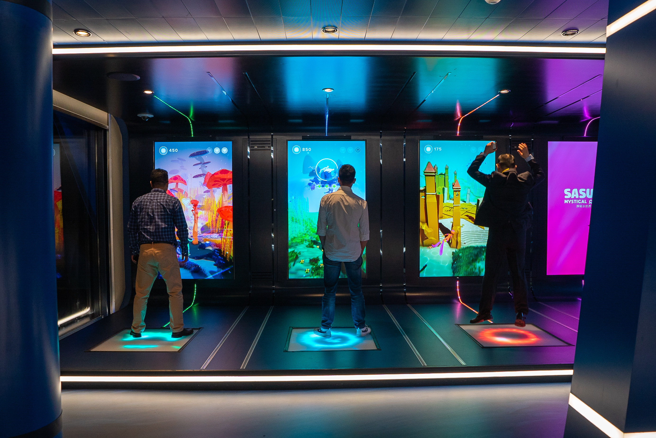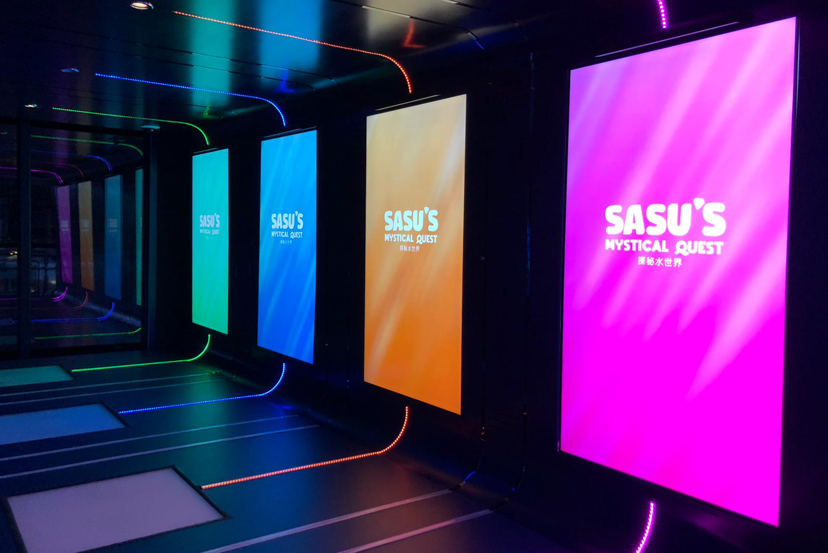 An Bord der Spectrum of the Seas finden Gäste ein interaktives Videospiel - Sasu's Mystical Quest. Das Ziel des Spiels ist es, der Hauptfigur Sasu zu helfen, durch vier Unterwasserwelten zu tauchen. Die Gäste steuern Sasu dabei über ein speziell von uns angefertigtes LED-Balance-Board. Der Spieler muss das Gewicht nach links und rechts verlagern, auf- und abspringen, um Edelsteine zu sammeln und dabei Hindernissen ausweichen, um die höchstmögliche Punktzahl zu erzielen. Er sollte auf seinem Weg nach magischen Kreaturen Ausschau halten, die ihm bei seiner Journey helfen und darauf achten, Tentakel zu meiden. Sollte Sasu doch mal in einem der Krakenarme hängen bleiben, muss der Spieler sich solange schütteln, bis er Sasu befreit hat.