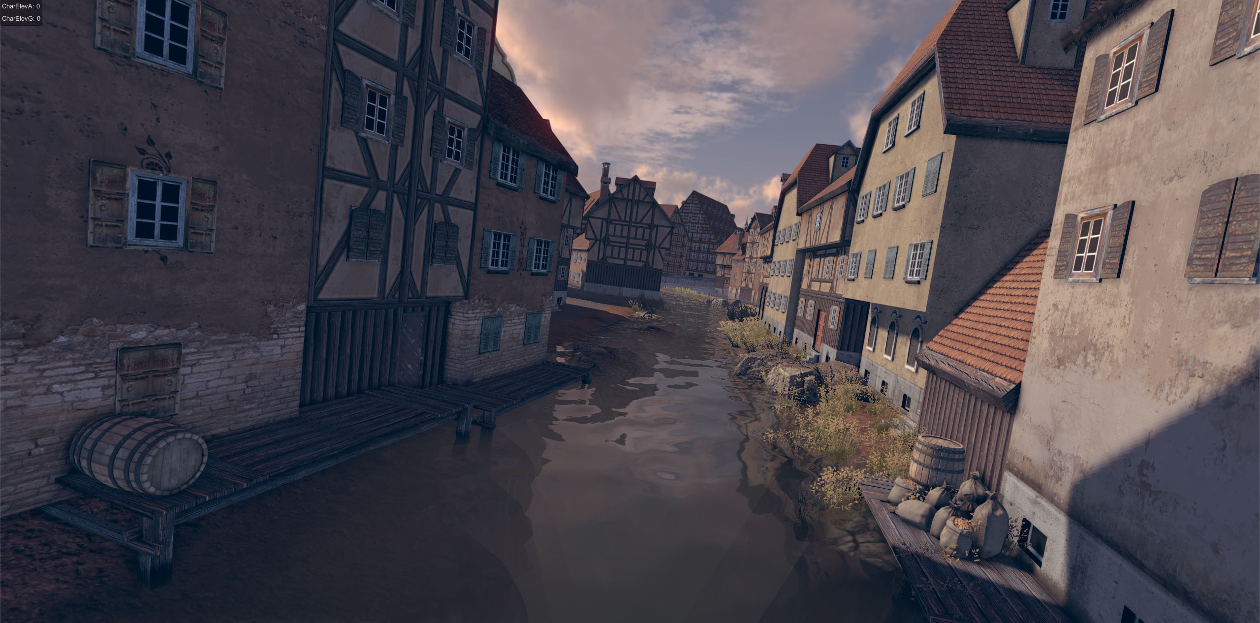 Nach erfolgreicher Recherche startete die Konzeption und der 3D-Workflow. Das Münster, markante Gebäude und normale Wohnhäuser der Zeit werden entworfen, modelliert und texturiert. Die historische Architektur findet sich in jeder Fassade wieder. Selbst einfachere Gebäude nutzen zusätzliche Geometrien für Balken, Fenster oder Wäscheleinen und erzeugen so ein realistisches und detailliertes Erlebnis.